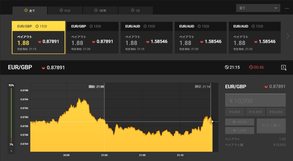 ※ペイアウト率(払い出しの倍率)は予想が難しい取引ほどアップします。
