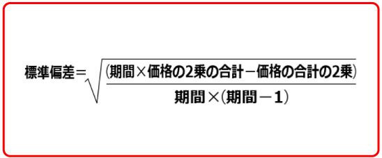 σ(シグマ)は移動平均数値の標準偏差として次のように計算できます。